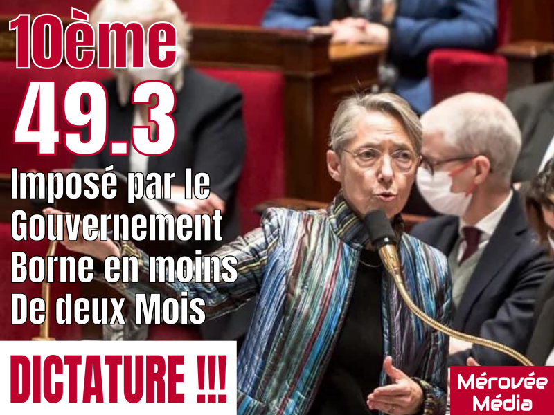 Et de dix ! La Première ministre Elisabeth Borne a déclenché jeudi 15 décembre, pour la dixième fois, l'article 49.3 de la Constitution pour faire adopter définitivement le projet de loi de finances 2023 à l'ouverture de la séance à l'Assemblée nationale consacrée à sa lecture définitive. Mathilde Panot a annoncé dans la foulée, sur Twitter, que la Nupes allait déposer une motion de censure.