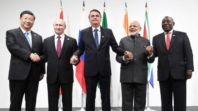 Les nations BRICS (Brésil, Russie, Inde, Chine et Afrique du Sud) représentent plus de 40 % de la population mondiale et près d’un quart du PIB mondial. Les objectifs déclarés du bloc comprennent la promotion de la paix, de la sécurité, du développement et de la coopération au niveau mondial, ainsi que la contribution au développement de l’humanité.