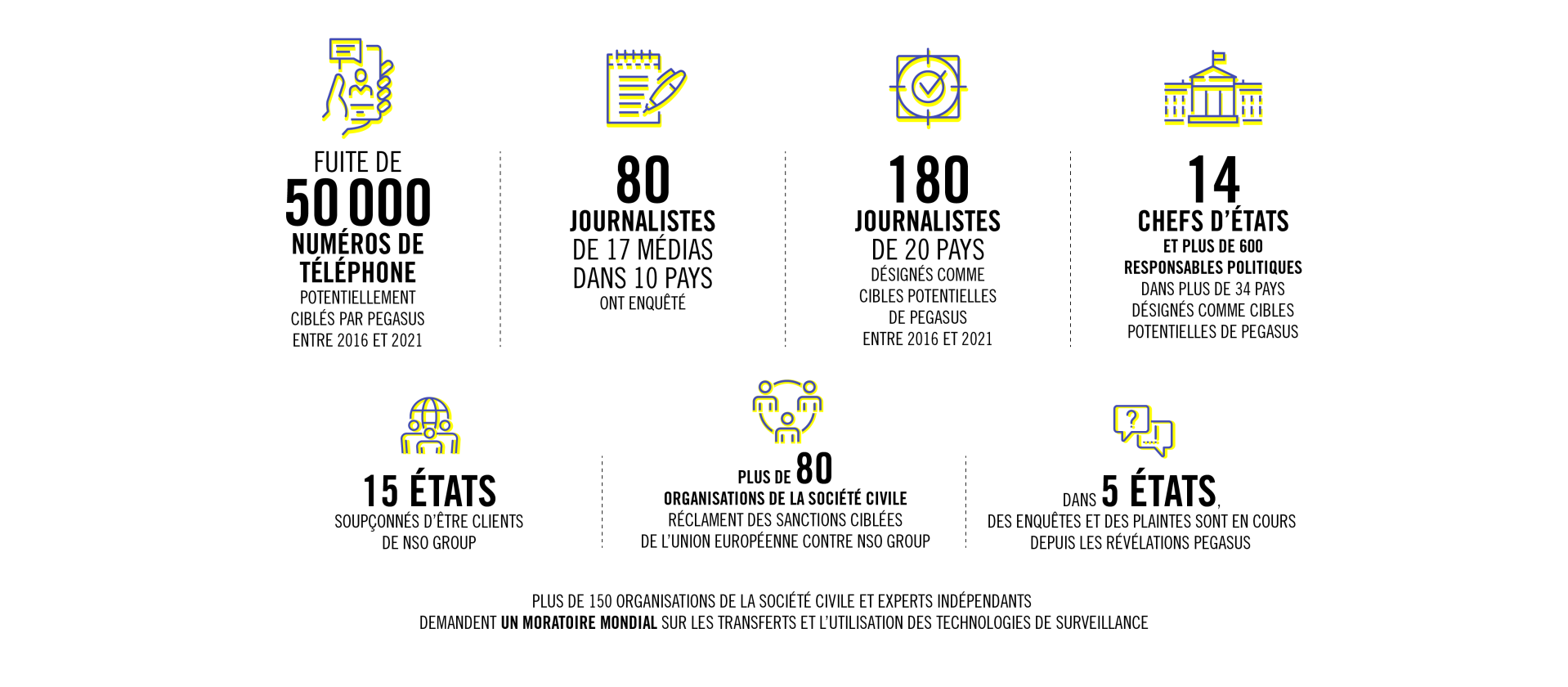 Comment un logiciel, qui représente une menace directe et réelle pour des milliers de personnes, a-t-il pu être conçu et si largement distribué ? Pour "Lutte contre le terrorisme", se défend NSO Group. Un journaliste comme Edwy Plenel serait donc un terroriste ? C’est là où est le danger : Pegasus est une arme numérique qui, sous couvert de lutte contre le terrorisme, est utilisée illégalement contre des membres de la société civile. Parce que leurs activités professionnelles dérangent. Parce que leurs opinions politiques bousculent. Parce que leurs combats pour la défense des droits humains embarrassent.