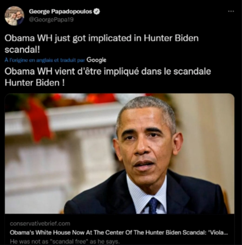 "Les transactions de Hunter Biden ne sont pas passées inaperçues, et une enquête du ministère de la Justice (DOJ) commencée sous l'administration Obama s'est étendue pour inclure une grande variété de violations et de crimes potentiels. Selon le New York Times, Hunter Biden fait actuellement l'objet d'une enquête du DOJ pour d'éventuelles violations de la loi sur l'enregistrement des agents étrangers et d'éventuelles évasions fiscales criminelles et blanchiment d'argent.